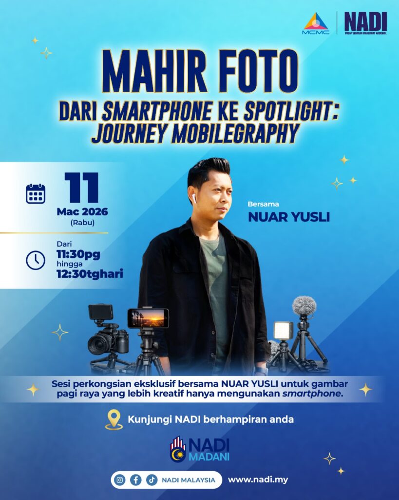 6️⃣ Mahir Foto – Dari Smartphone ke Spotlight: Journey Mobilegraphy bersama Nuar Yusli