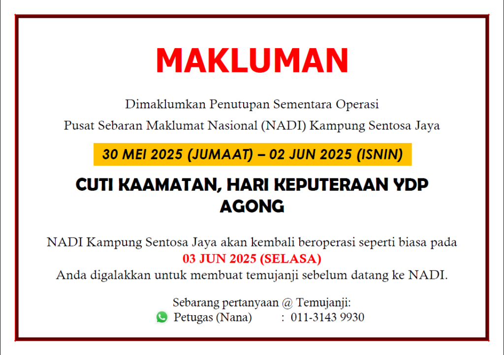 NOTIS PENUTUPAN SEMENTARA – PESTA KAAMATAN, HARI KEPUTERAAN YDP AGONG 2025